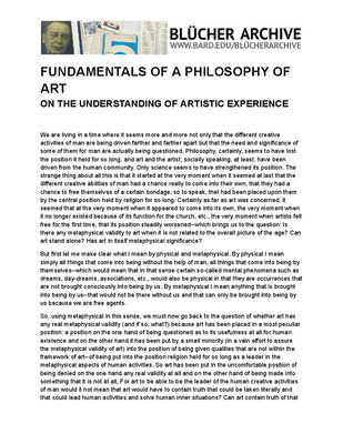 Fundamentals of a Philosophy of Art on the Understanding of Artistic Experience