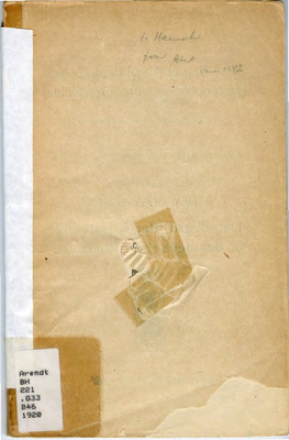 The Hannah Arendt Personal Library comprises hundreds of volumes bearing marginalia and annotations. As part of our ongoing preservation initiative, we aim to scan and digitize all pages containing these distinctive markings. For each annotated volume, a direct link to the corresponding catalog record has been provided.